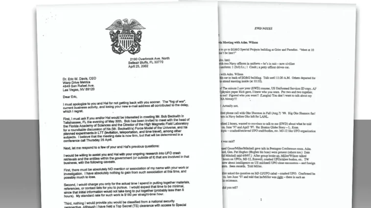 Auch ein früheres Kongress-Anhörungsdokument, das als mysteriöses “Wilson-Davis-Paper” bekannt ist, beschäftigt sich mit geheimen UFO-Forschungsprogrammen und dem möglichen Nachbau außerirdischer Technologie.